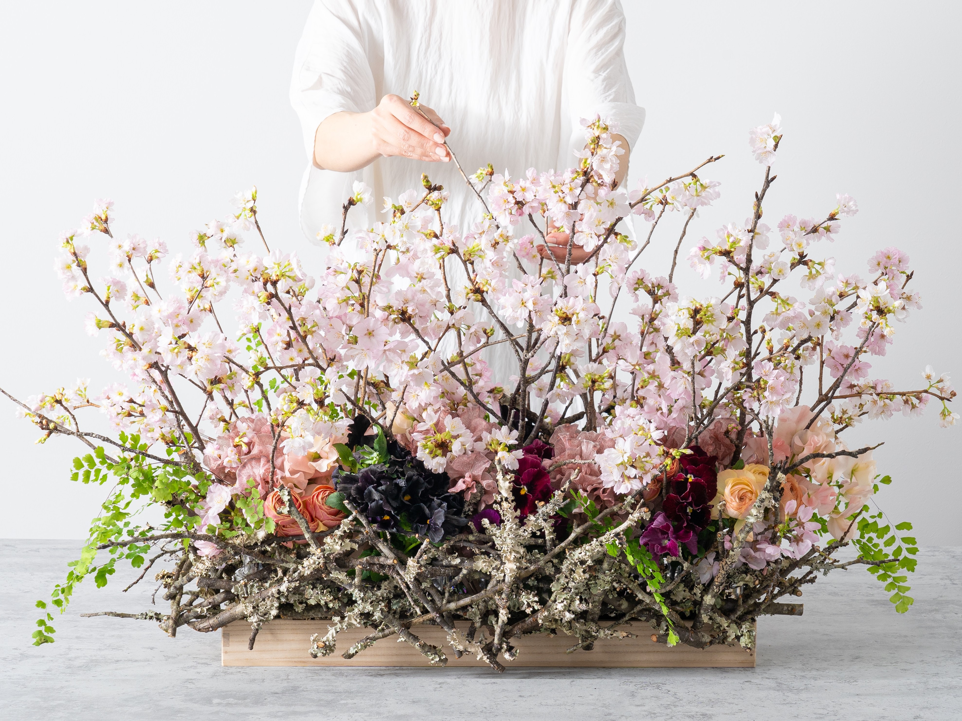 また日本橋店初となる映像演出を第一園芸の空間デザイン部門OASEEDS(オアシーズ)が担当。目の前にはリアルな桜、足元にはバーチャルな桜の花びらが舞い散る店内で、季節の花々や観葉植物、洋ラン、花瓶などの雑貨等のお買い物を、ゆったりとお花見をしながらお楽しみください。