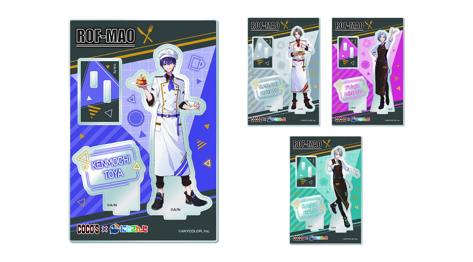 また期間中は、“ROF(ろふ)-MAO(まお)”の加賀美(かがみ)ハヤト・剣持(けんもち)刀也(とうや)・不破(ふわ)湊(みなと)・甲斐田(かいだ)晴(はる)によるオリジナル店内放送を実施します。さらに、中野店限定特別装飾や、対象店舗でのココス限定商品の販売・等身大パネルの設置で、キャンペーンを盛り上げます。