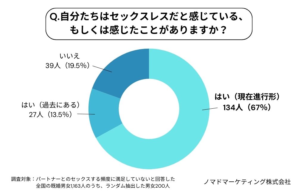 「はい(現在進行形)」と回答したのは200人中134人(67%)。半数以上が、今セックスレス状態だということがわかりました。