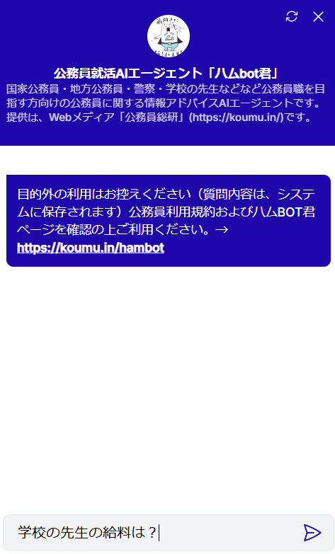 2025年2月17日(月)、公務員就職情報インターネットメディアが、公務員採用試験や給料情報などを質問できるAIチャットボット「ハムbot君」誕生!