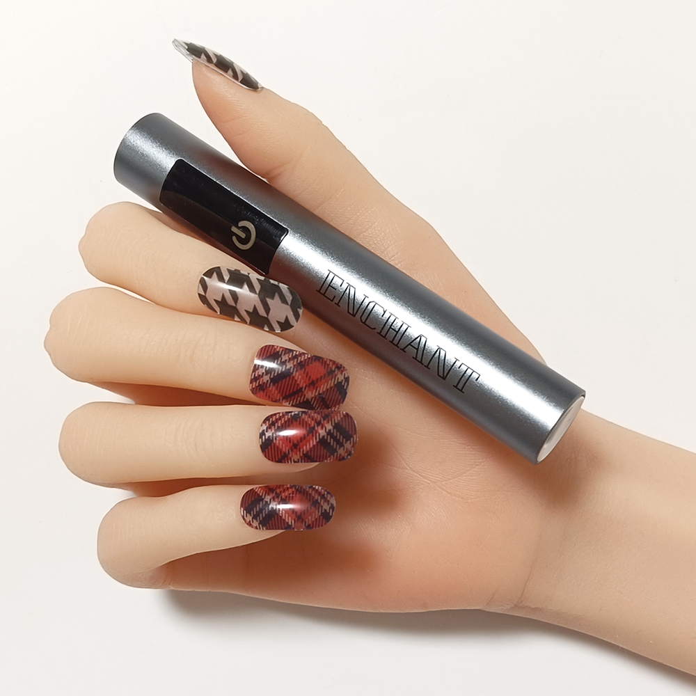 爪と環境に悪影響を与えないよう2年以上に及ぶ共同研究によって商品開発し、2024年11月に発売開始した、ENCHANT。性別年齢を問わないデザインで、独自構造とネイルケア成分配合で爪に対してのやさしさにこだわりぬいたGel Nail Stickers(半硬化ジェルネイルシール)を中心に、ネイル商品を展開しております。