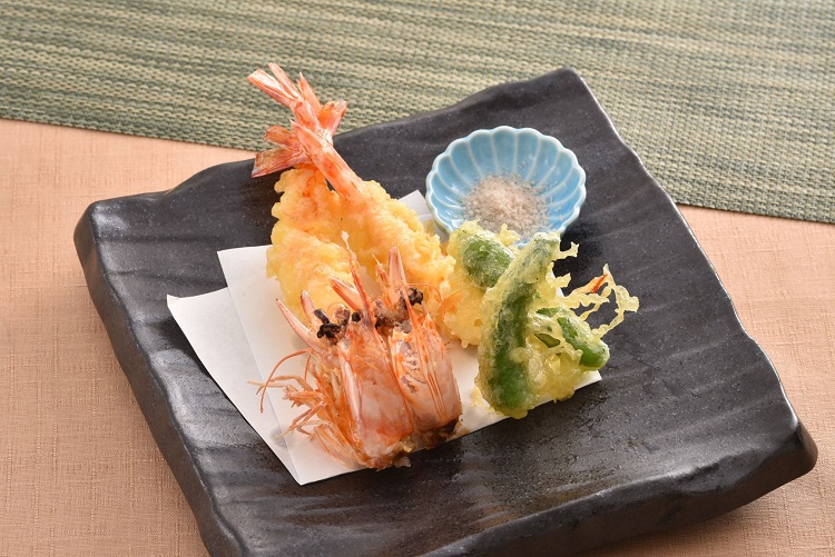 いけすからあげたての鮮度抜群の『活車海老』の引き締まった食感と素揚げした頭の香ばしさをご堪能ください。また、車海老の代表料理といえば天ぷらです。火を入れてもしまりすぎず、赤く色付き、実に甘みが強い味わいです。
