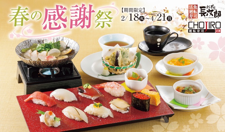 【にぎり⻑次郎】春メニュー第1弾&春の感謝祭2/18(火)から同時開催!春の訪れを感じられる期間限定の味わい
