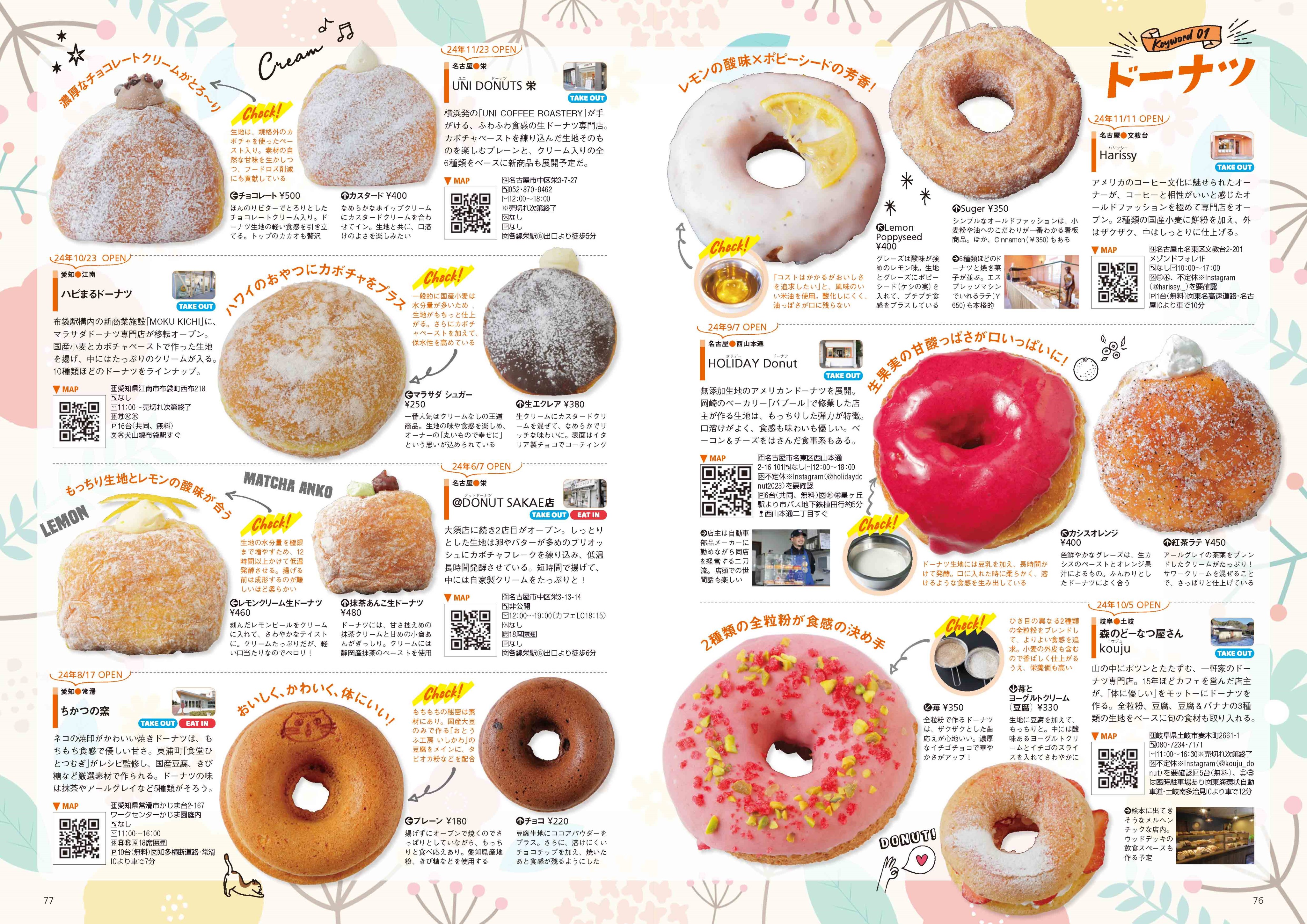 ・「‘25東海 最新スイーツ69」この1年にオープンした東海エリアのスイーツ店の中から厳選! ドーナツ、新パティスリー、クレープ、大須スイーツなどジャンル別に紹介。ホテルや商業施設の春の新作も登場します