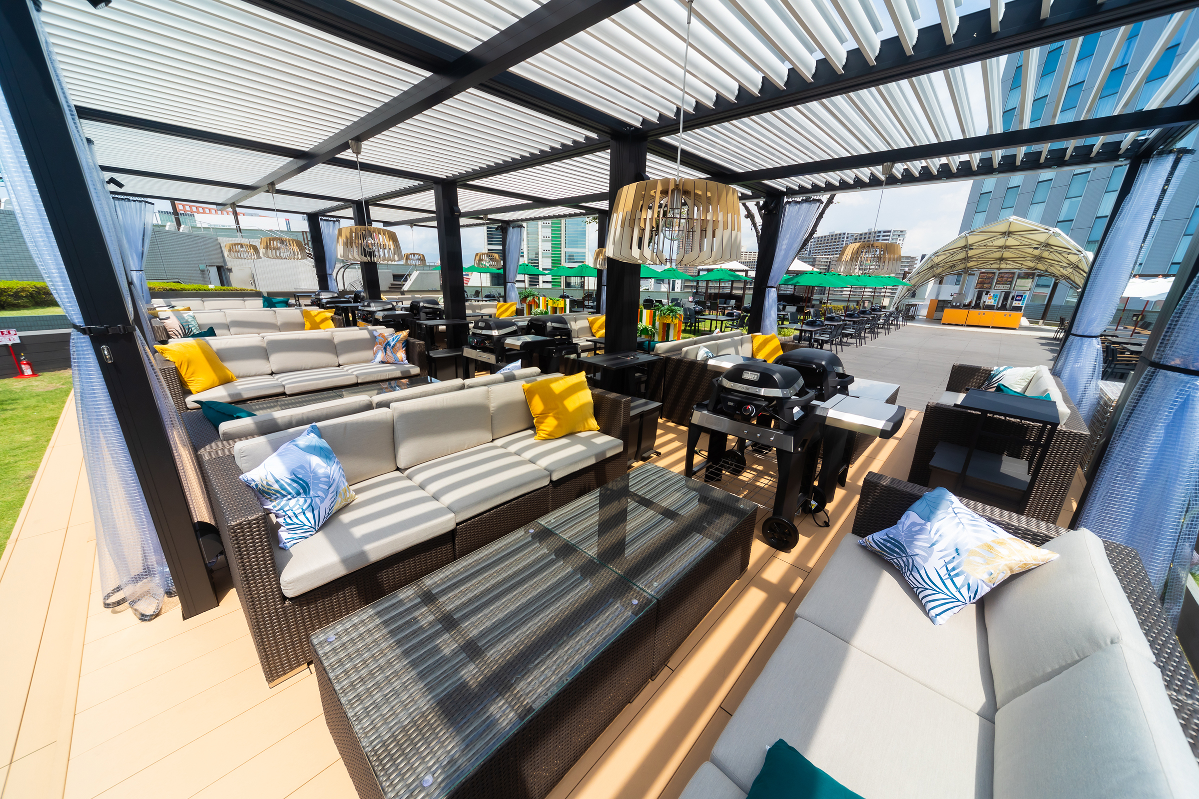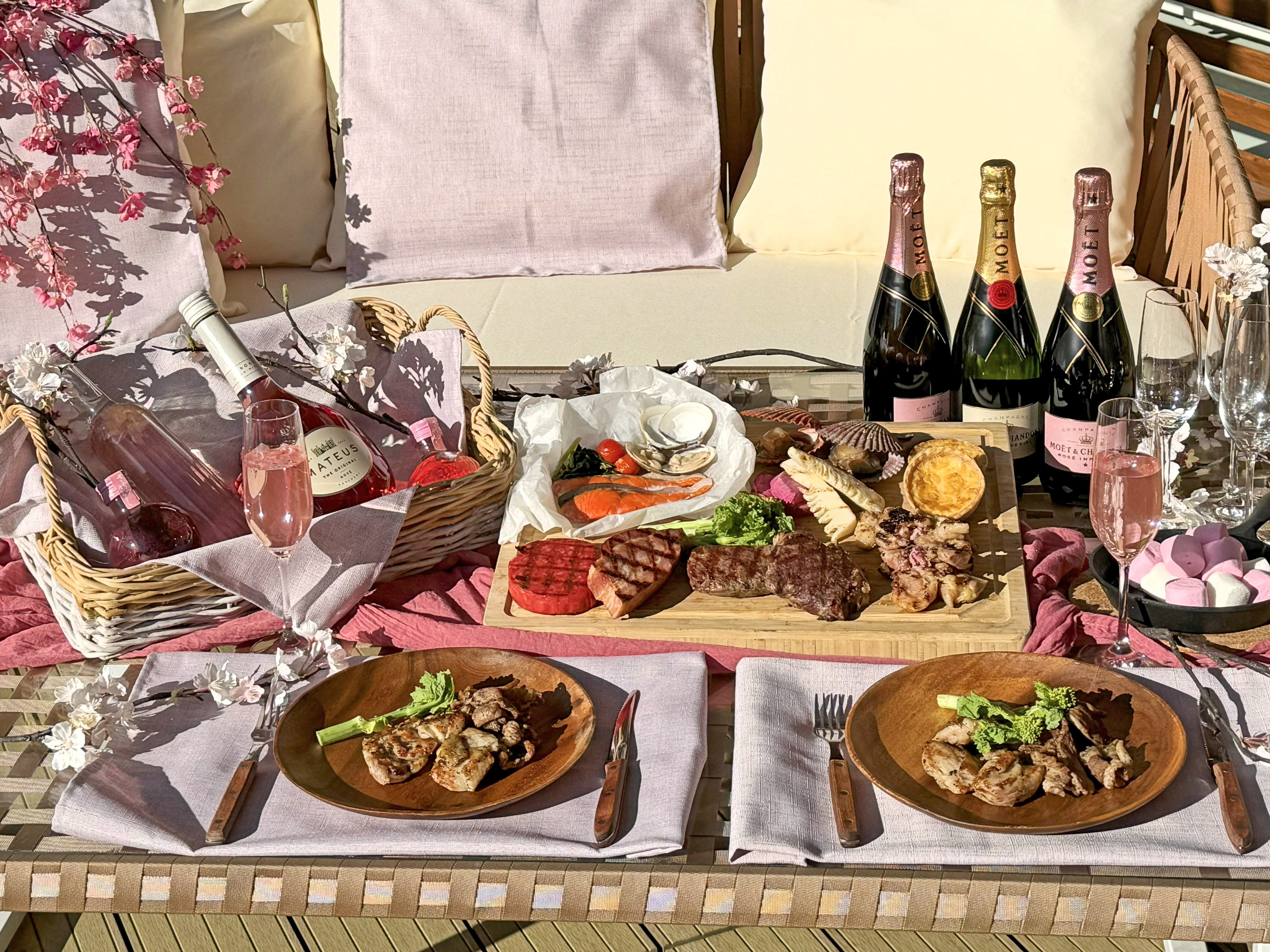 また、気の知れたお連れさまと過ごす和やかなBBQの思い出を撮影していただけるよう、店内には桜の装飾を施したSNS映えする特設スポットを設置いたします。地上約25メートルに位置する開放的な屋上ガーデンにて、春のうららかな陽気に包まれながら、贅沢な日帰りグランピングをご満喫ください。