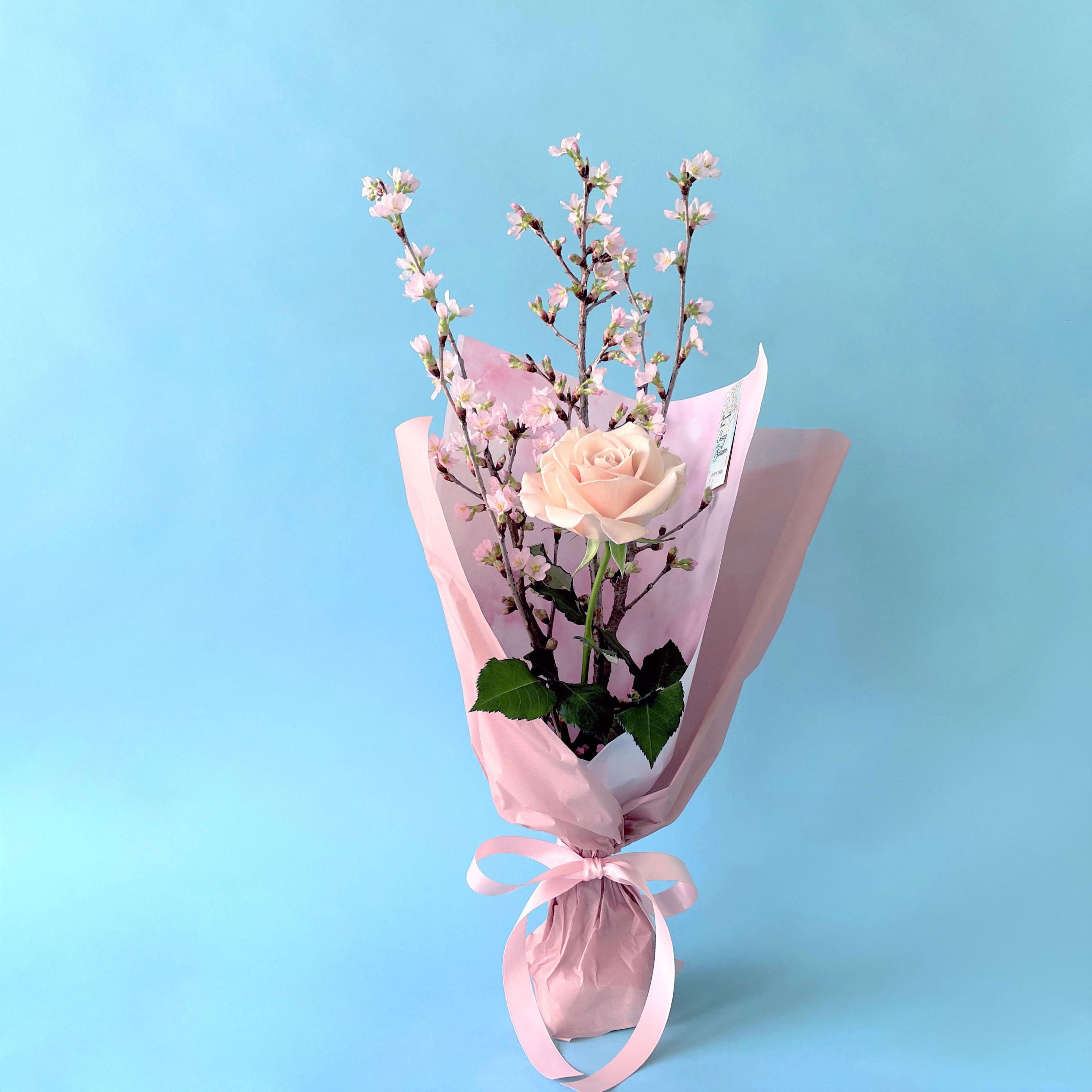 桜をシンプルなブーケに仕上げました。コンパクトなサイズでちょっとしたギフトやご自宅用にもおすすめです。