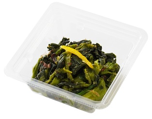 白だしで下味をつけた菜の花のからし和えです。混ぜ込んだかつお節とピリッとした辛さがクセになる味わいです。