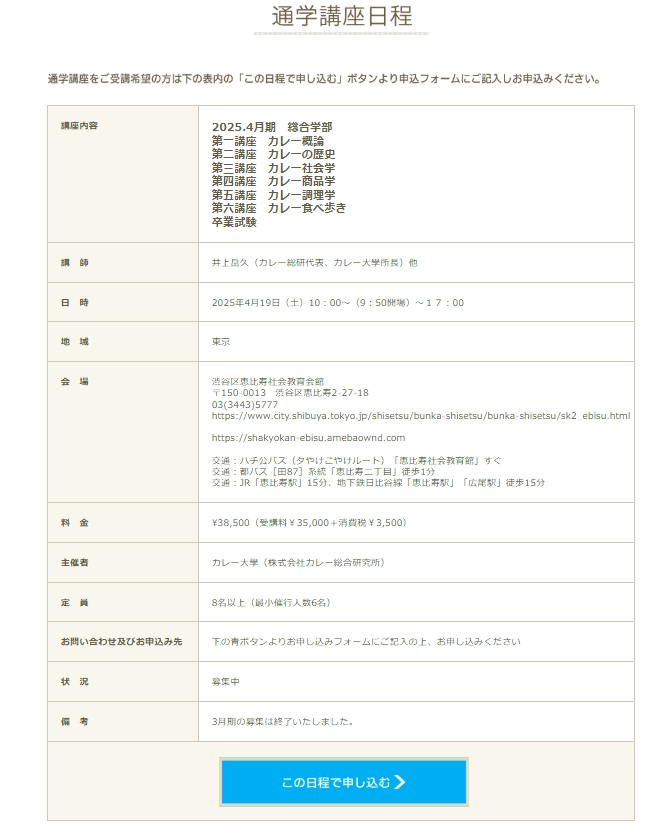 サブタイトルカレー・オブ・ザ・イヤーを目指しませんか?カレー大學に入学し話題のカレーの祭典に参加しませんか?4月19日の「カレー大學総合学部」通学コースでも解説します!
