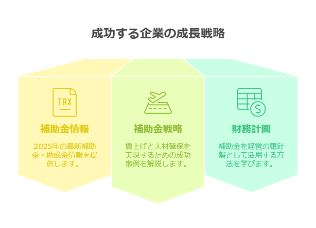 補助金を単なる資金補助ではなく、事業の発展を後押しする「成長の投資」として捉え、適切に活用することで、賃上げの実現だけでなく、企業のさらなる発展へとつなげることが可能です。