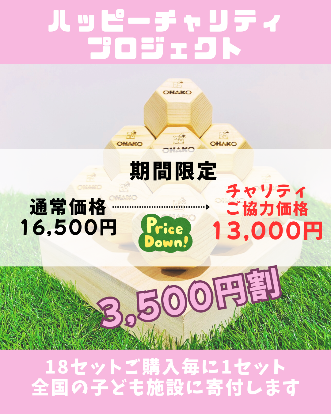 OHAKOハッピーチャリティプロジェクト!脳トレ積み木18セット購入毎に1セットを日本全国の子どもに関わる施設にお届けします!