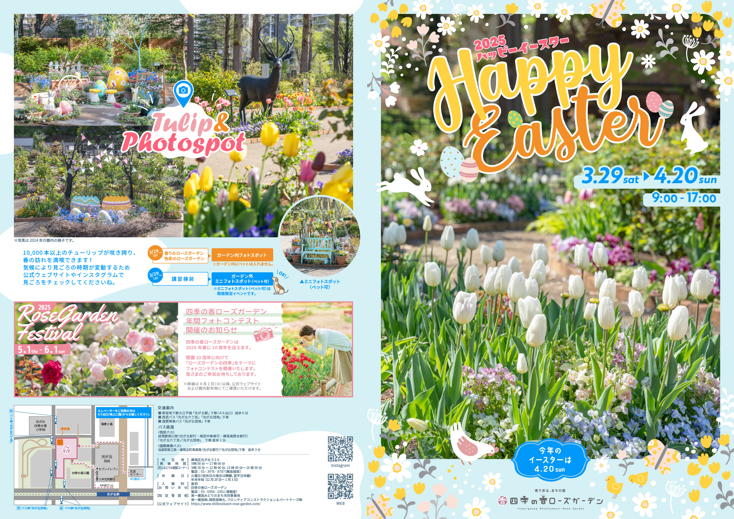 花と緑に関する事業を展開する第一園芸株式会社(本社:東京都品川区、代表取締役社長:山村勝治、三井不動産グループ)と株式会社西部緑化・フロンティアコンストラクション&パートナーズ株式会社による「第一園芸みどりのまち共同事業体」が指定管理者として参画する『練馬区立 四季の香(かおり)ローズガーデン』で、3月29日(土)から4月20日(日)まで「2025ハッピーイースター」を開催します。