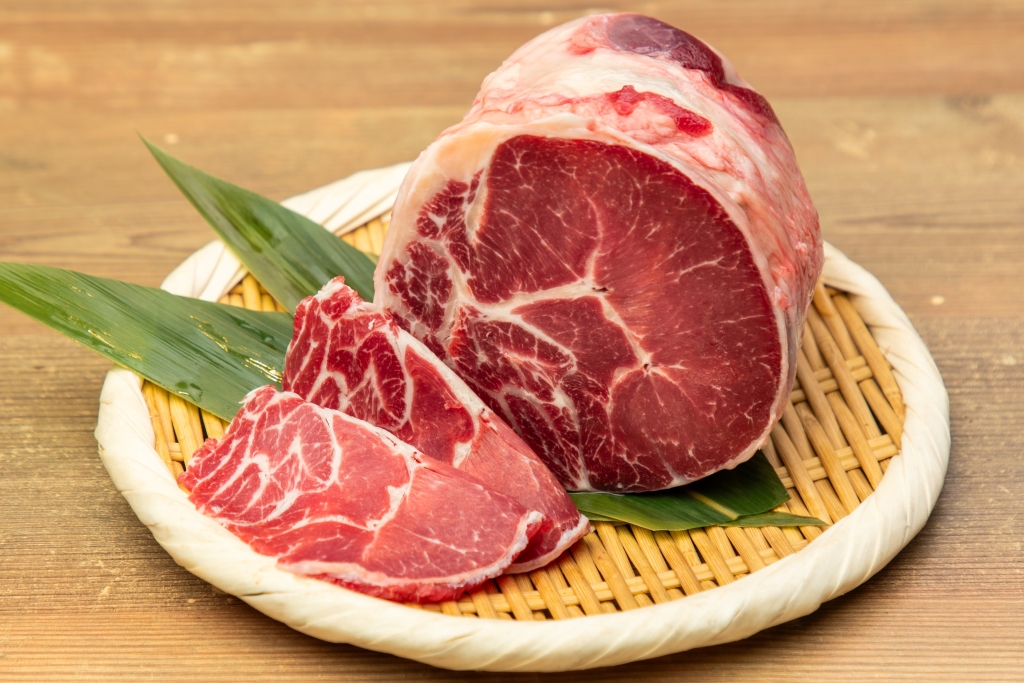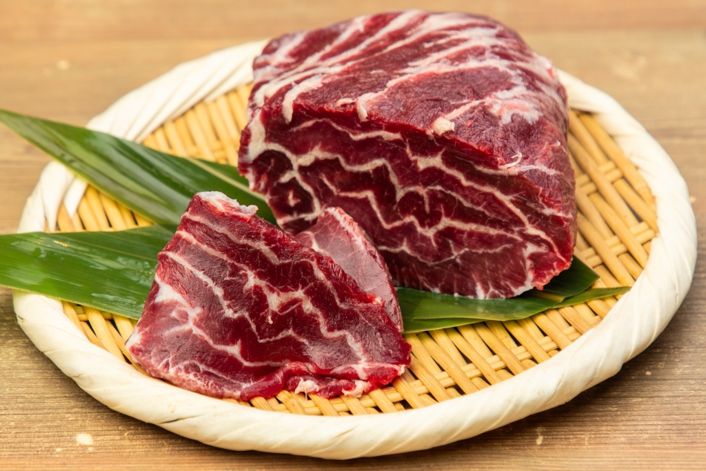 馬の後ろ脚の付け根にあるもも肉の一部。筋が少なく、キメの細かい肉質のためしっとりとした食感です。ヘルシーな馬肉の中でも脂肪分が少なく上品な味わいが魅力。