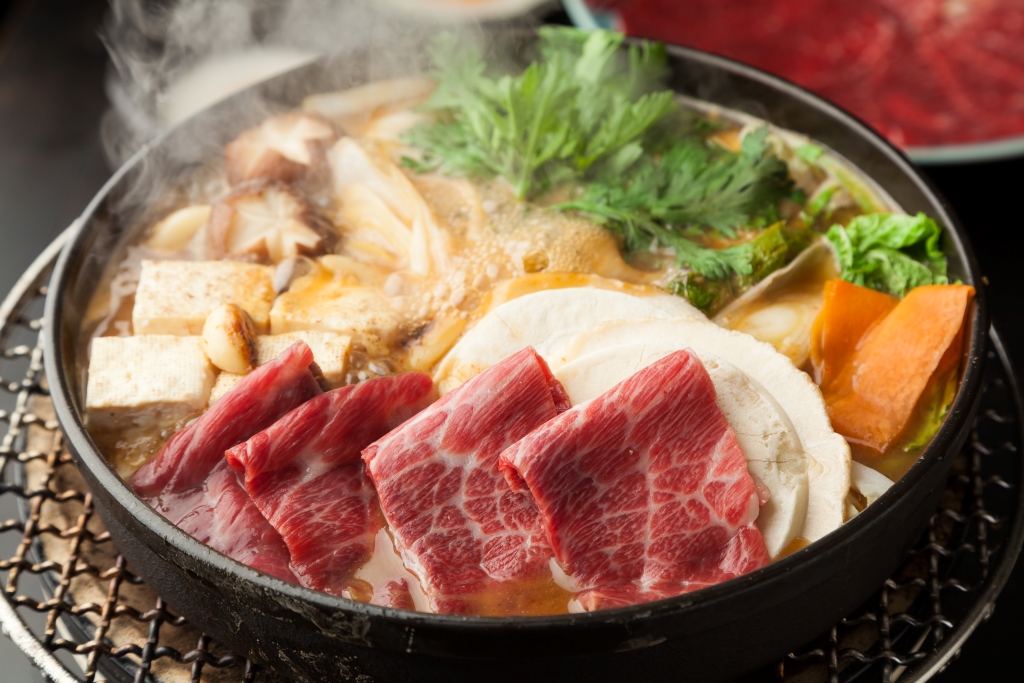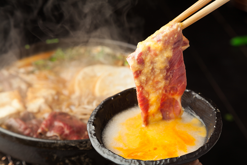 レアでも食べられるほど新鮮な馬肉を、にんにくがたっぷりと効いたオリジナルの割り下で食す精力すき焼きです。