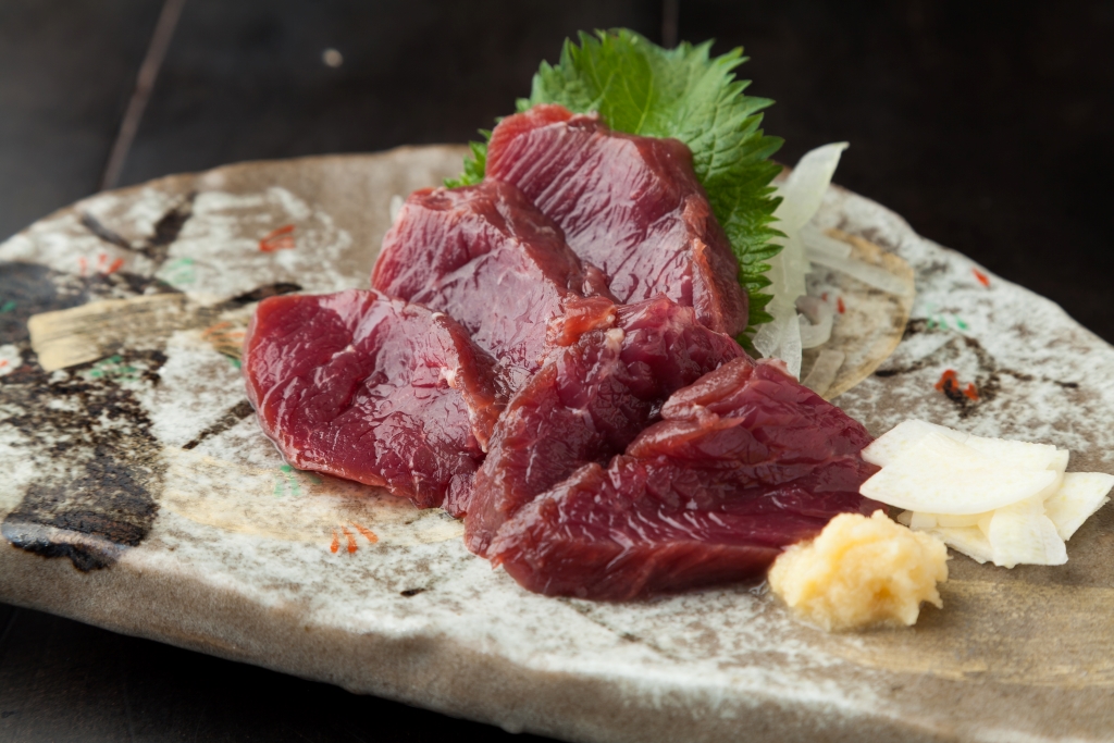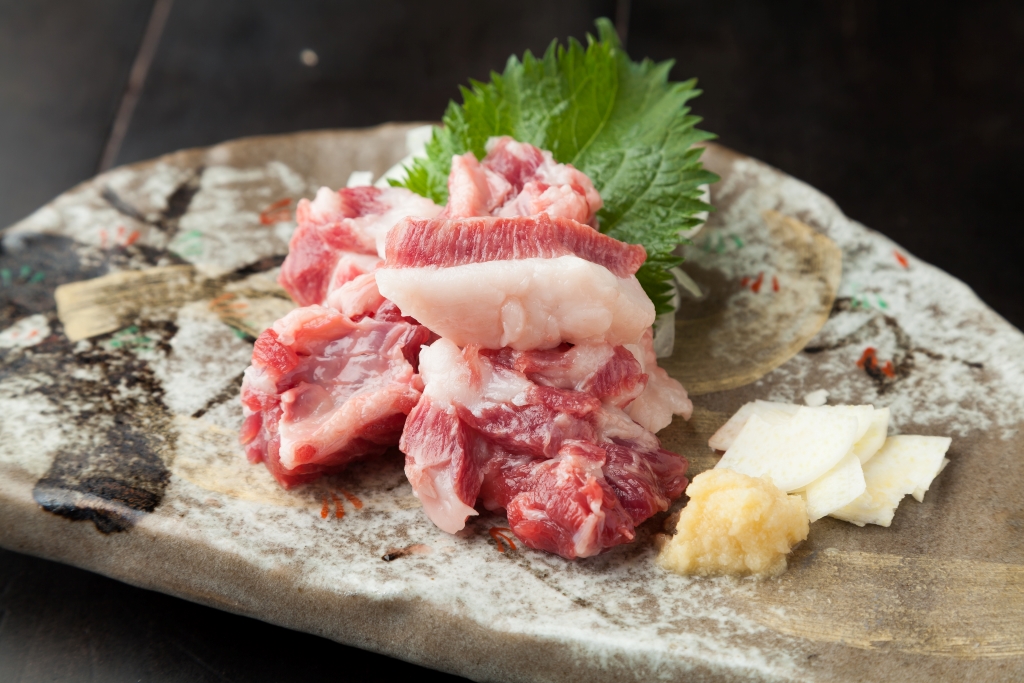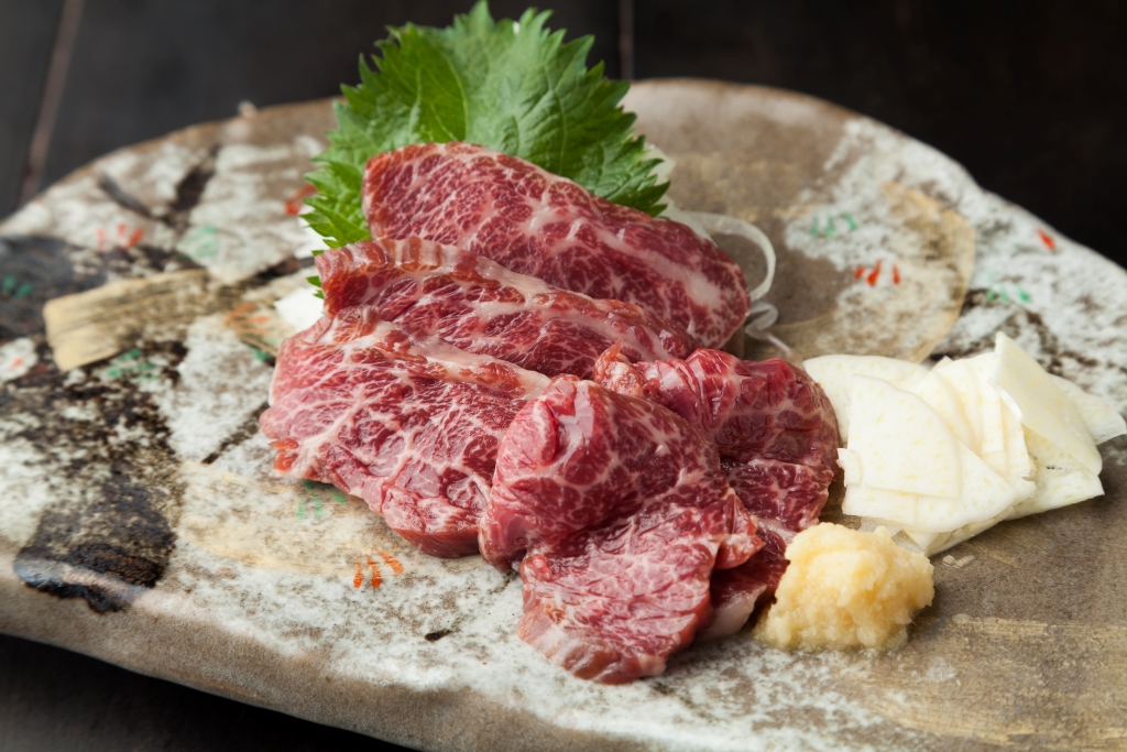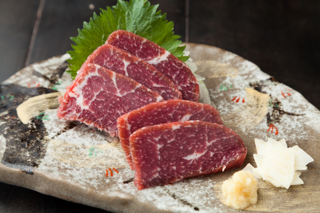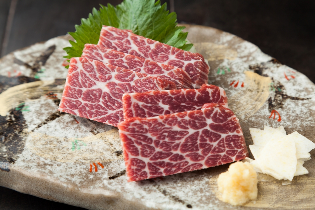 あばら骨に沿った赤身と脂が三つの層を成す馬肉特有の希少部位。コリコリとした弾力のある食感も楽しく、噛めば噛むほど濃い味へと変化します。