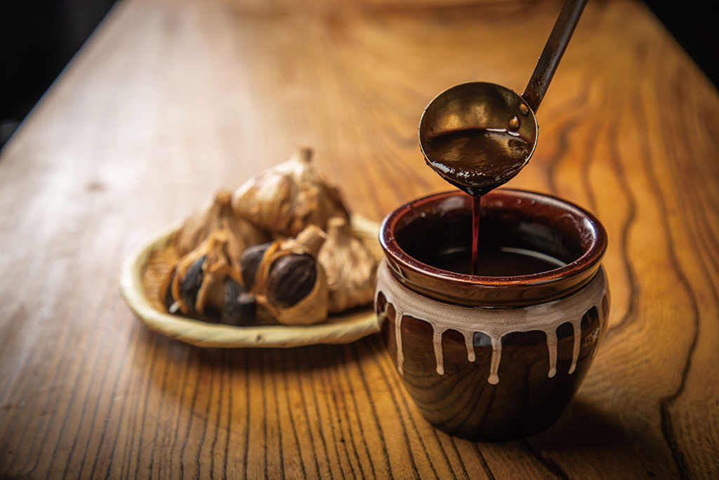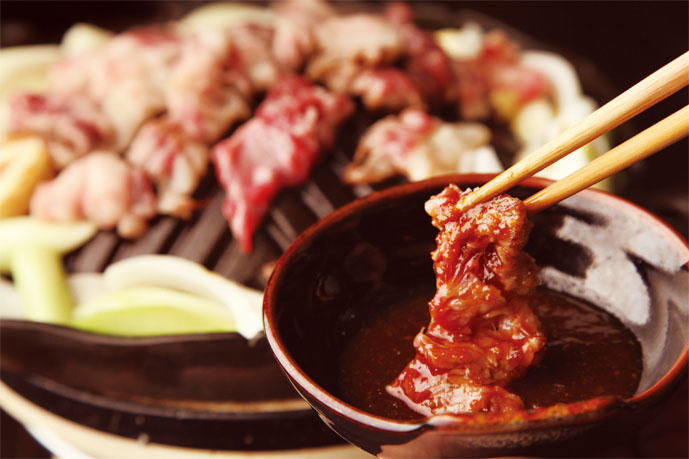 青森県産の黒にんにくを細かく刻んでペースト状に。そこに少し甘みのある醤油と、酒を合わせてじっくり煮出した「馬並み家」特製の醤油です。にんにく特有の香りがマイルドになり、旨みも増しているので、どの部位と合わせても肉の味わいを一層深めてくれます。