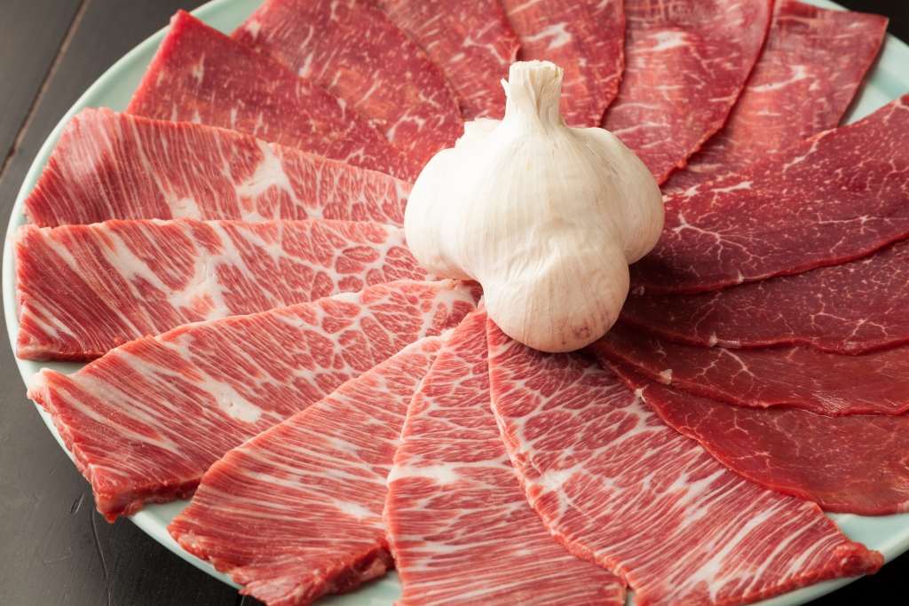 擦りおろした青森県名物のりんごと、同じく擦りおろした生のにんにくを合わせることで、りんごの甘みと酸味、にんにく特有の風味が掛け合わされ、馬肉から溶け出した肉汁と絶妙な味のハーモニーを奏でます。