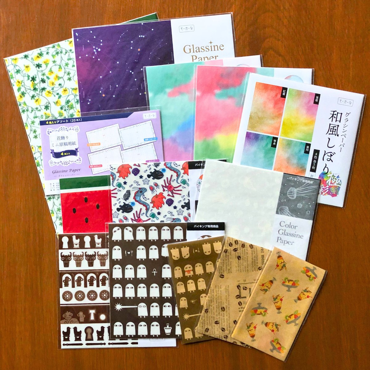 大人気のメジェド、ハニワ、メンダコ、クラゲに、春らしく華やかなデザインペーパーを加えた、春のスペシャルセットを販売します。グラシン紙アイテムが14点、3685円相当が入っている商品が40%OFFの2,200円(税込)と大変お得なセットです。