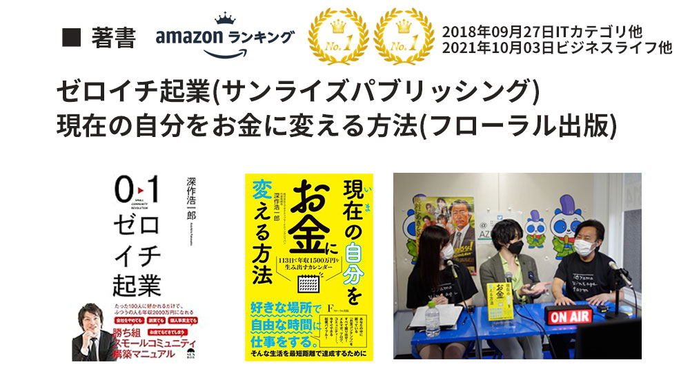 画像上:深作浩一郎書籍発売時のメディア出演時の様子