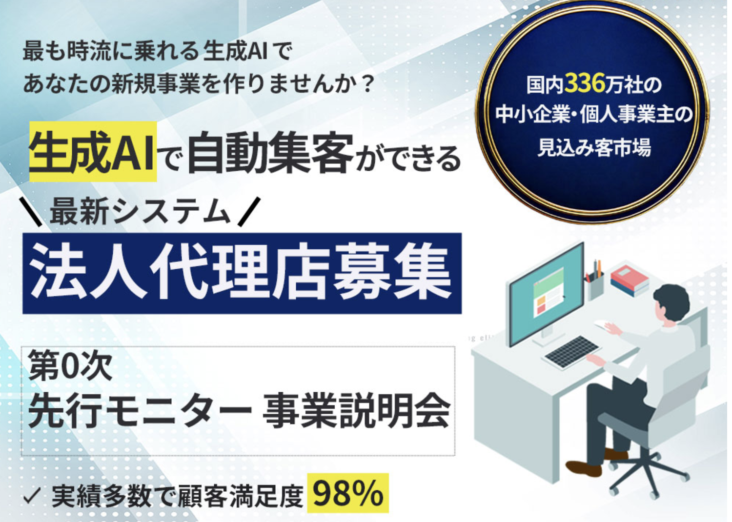 今回の販売代理店制度は、10年以上のWEBマーケティングノウハウをAI化し、再現性のある新規法人の集客支援に活用するための次世代プログラム です。