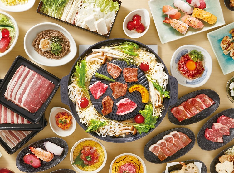和食さとの食べ放題は、しゃぶしゃぶ/すき焼き/焼肉が120分食べ放題の3つのコースをご用意しています。その中でも人気の「さとしゃぶ牛&豚プレミアムコース」は、しゃぶしゃぶの食べ放題に加え、炙り寿司や天ぷら、焼とりなどの一品料理も食べ放題です。さらに、たい焼きやみたらし団子などの甘味メニューと、ソフトクリームも食べ放題なのも人気のヒミツです。また、新スタイルのさとの焼肉食べ放題「さと式焼肉」はさと特製の専用鍋で、焼肉とお鍋を同時に楽しめる新しい形の食べ放題です。
