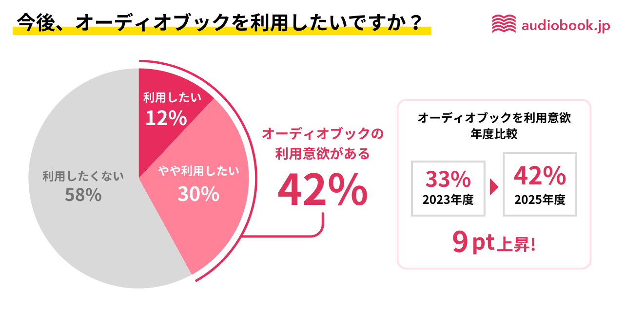 「オーディオブックを使ってみたい」が42%。2023年調査より利用意欲が9ポイント上昇