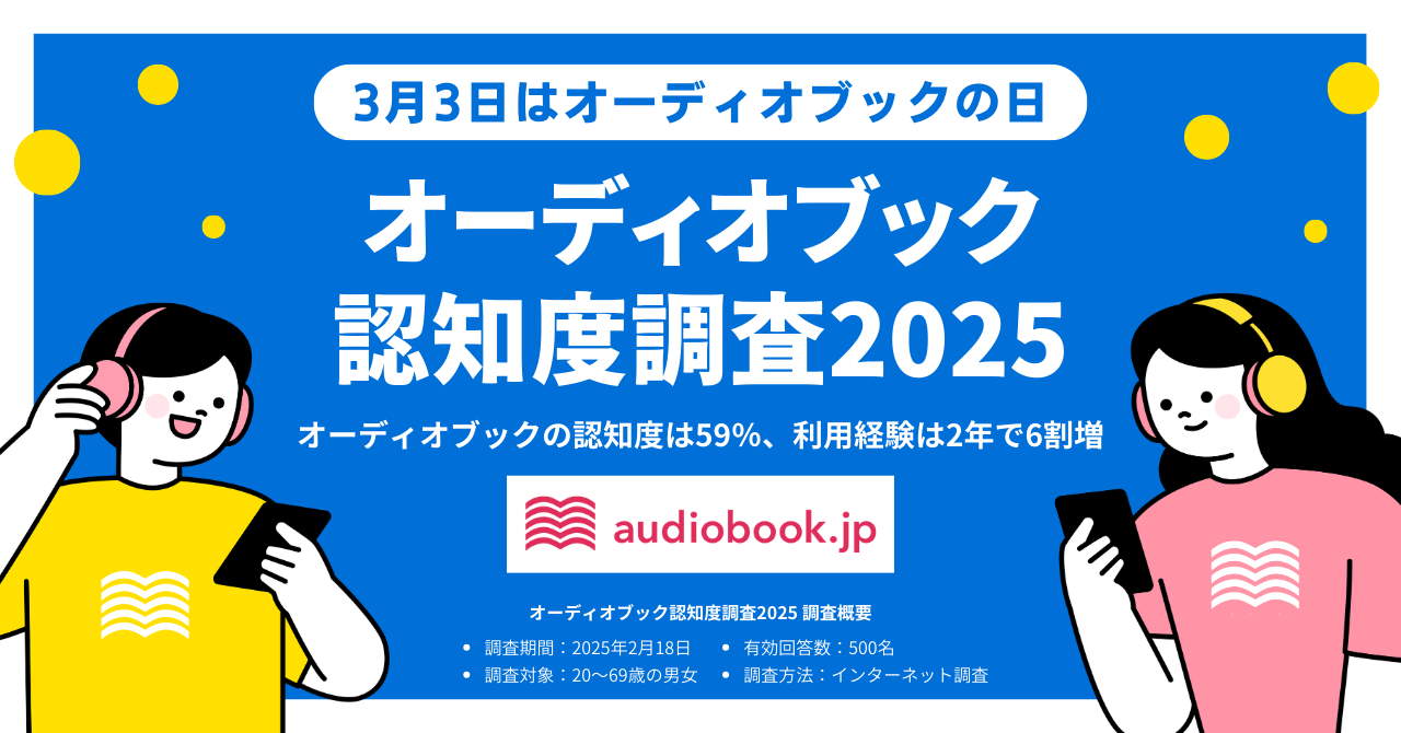 【3月3日はオーディオブックの日】 オーディオブック認知度は59%、利用経験は2年で6割増