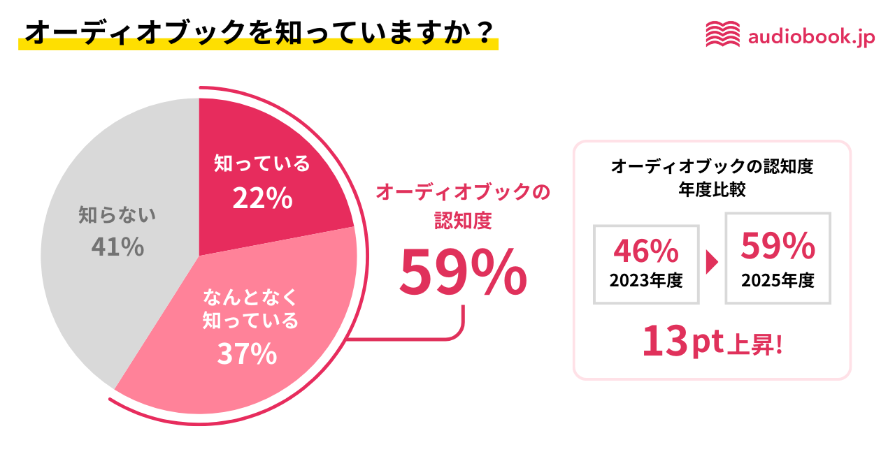 オーディオブックの認知度は59%、利用経験は15%。2023年調査より利用経験6割増