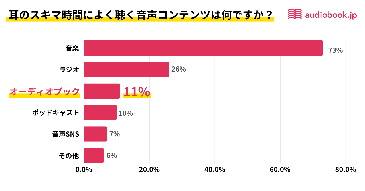 よく聴く音声コンテンツ「音楽」「ラジオ」に次いでオーディオブックが3位に