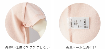 襟ぐりがゴム仕様で大きく伸びるので上からも下からも着脱が可能!前後どちらでも着用できるので着間違いすることがありません。