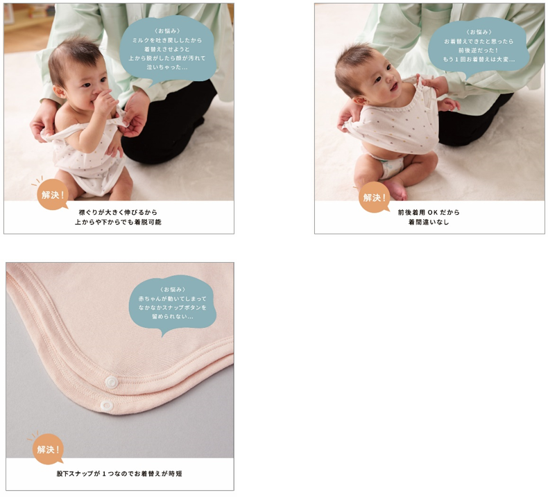 ママ・パパの〝ほしい″をかたちにしました!お着替え時短の『パパッとらくちんロンパース』