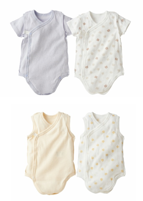 従来品では2つあった股下スナップボタンを1つにし、胸元のスナップボタンをなくしたためお着替えが時短に。赤ちゃんが活発に動いても“パパッとらくちん”に着替えさせることができます。