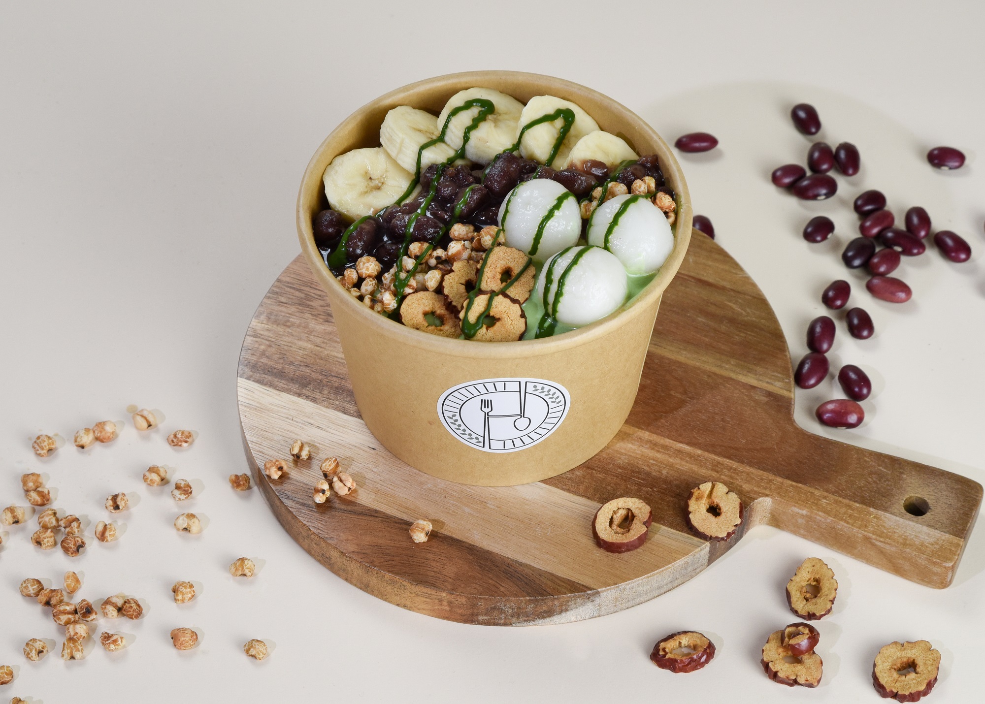 抹茶豆腐クリームの濃厚なコクに、白玉・ハトムギ・バナナ・小豆をトッピング。和の風味を楽しめる贅沢な一杯!