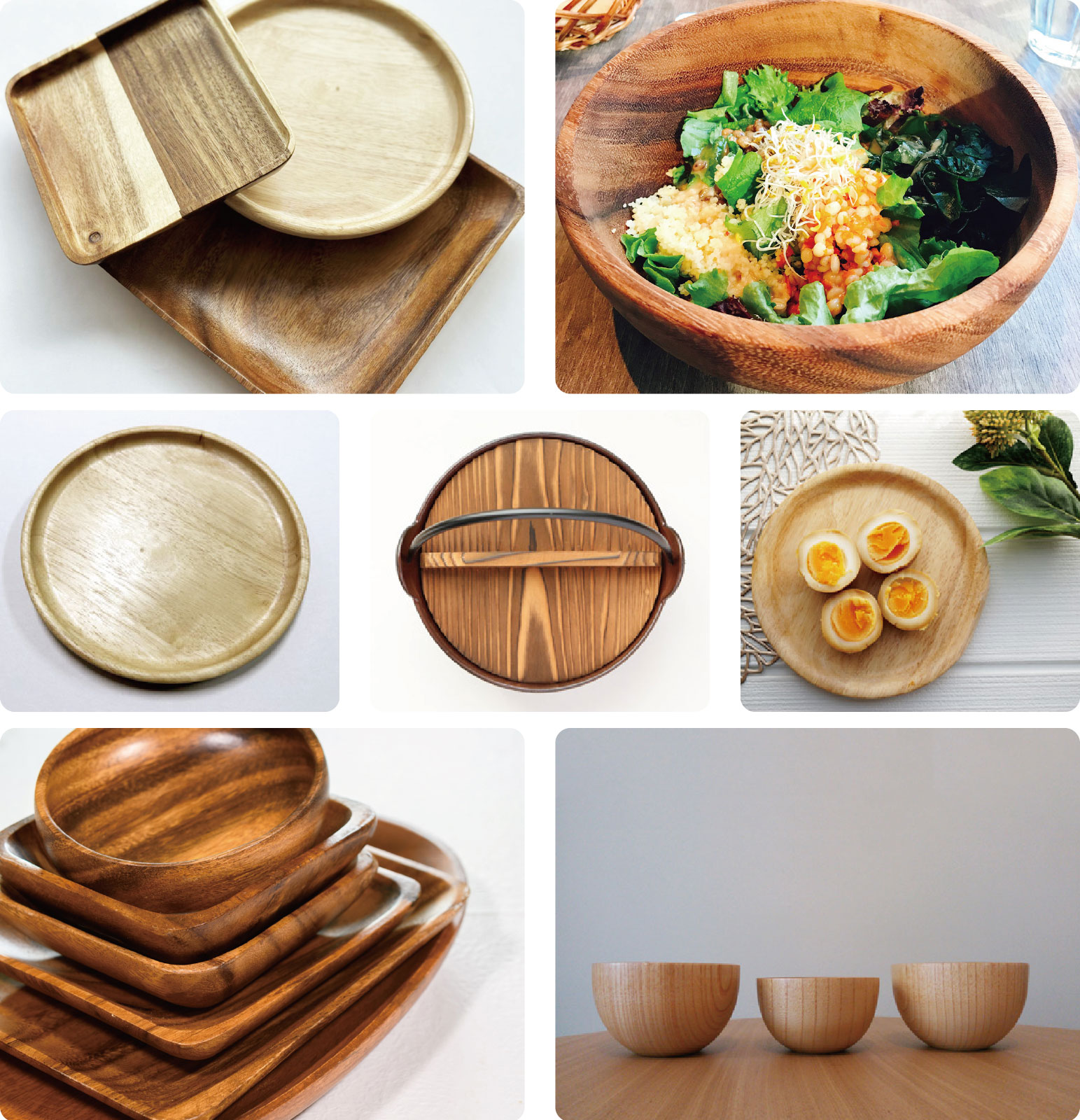 木製食器に塗ることで、水の浸透を抑える高い撥水性、水や油によるシミを防ぐ防汚性、高温の熱にも耐える耐熱性、食品衛生試験にも合格した安全性、さらには食中毒を防ぐ抗菌性を実現しました。