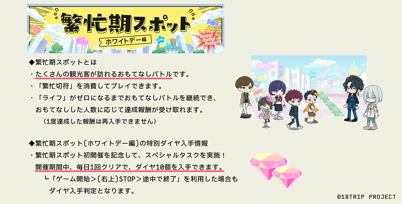 『18TRIP』初のゲーム内ホワイトデーイベントをぜひお楽しみください。