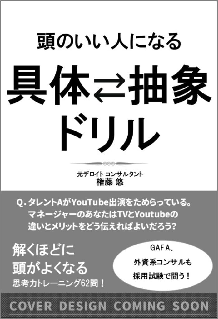 本書では、デロイトで解雇寸前だったところから、社内でも1%のトップ人材しか取れないS評価を取った著者が、「具体⇔抽象力」を鍛える思考力クイズを、ドリル形式で62問掲載しています。