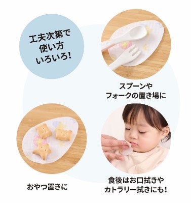 食後はお口やカトラリーを拭くこともでき、外出先でのおしょくじにも便利です。
