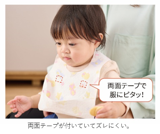 エプロンの内側に両面テープを付け、赤ちゃんが動いてもズレにくい仕様。