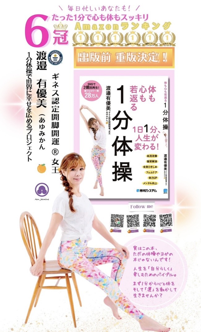 千葉県船橋市在住のヨガ講師であり、健康啓発活動を続けている渡邉有優美(通称:あゆみかん🍊)が、著書『体も心も若返る1分体操』(秀和システム刊)の全国寄贈プロジェクトをスタートしました。本プロジェクトでは、全国100ヵ所の図書館と7つの地元メディア、計107ヵ所へ本を寄贈し、健康と笑顔を届けることを目的としています。