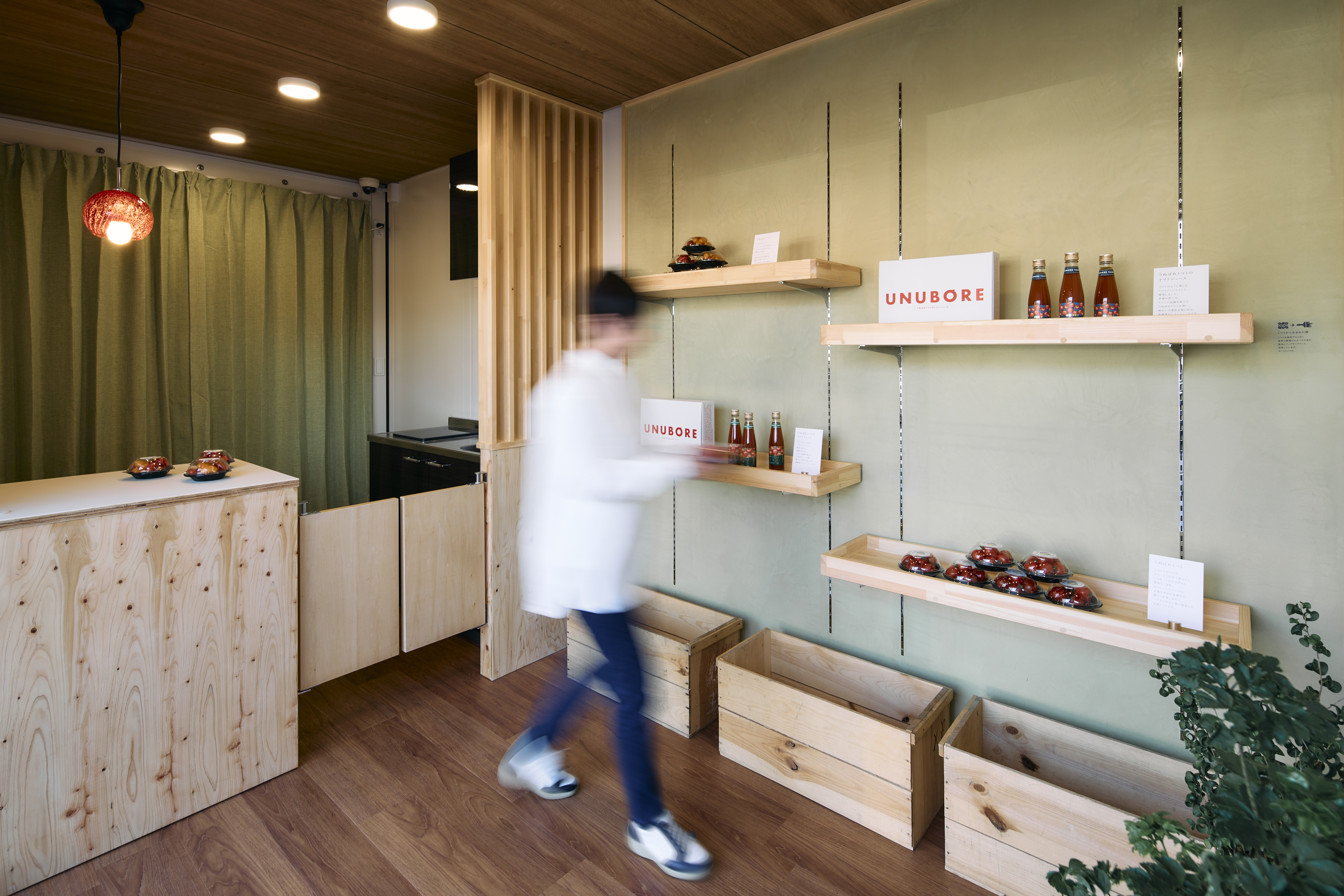店舗の特徴: 食材の廃棄物であるトマトのヘタや茎に新たな価値を見出し、建材として生まれ変わらせました。株式会社LOSS IS MOREとの協業により開発されたこの壁材は、私たちの農業プロジェクト「スコップ」の循環型社会への取り組みを象徴するものです。(LOSS IS MOREホームページ: https://lossismore.jp/)