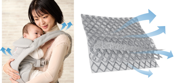 従来のモデルから好評を得ているやさしい肌ざわりのSoftFlex™メッシュをそのまま採用。抱っこ紐内のムレを軽減。