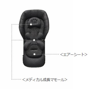 首・腰すわり前の赤ちゃんの頭と腰を 安定させ、負担の少ない快適な姿勢を保つ。