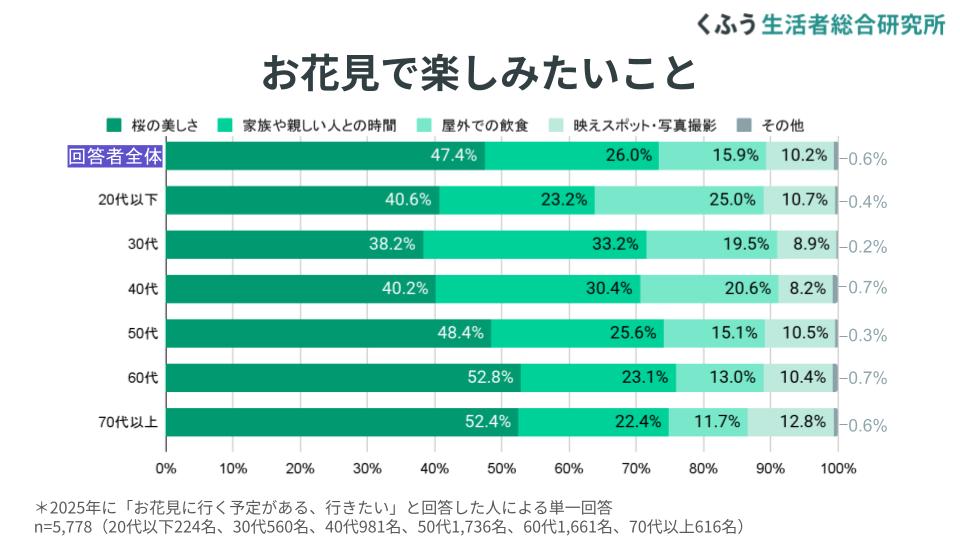 【くふう総研】2025年のお花見の傾向を年代別に分析!少人数の"ノンアル花見"が主流、ひとりでの"ソロ花見"派も約3割