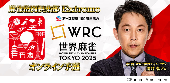 株式会社コナミアミューズメントは、WRCが主催する「アース製薬100周年記念 世界麻雀TOKYO2025」に協賛し、アーケードゲーム『麻雀格闘倶楽部 Extreme』とモバイルゲーム『麻雀格闘倶楽部Sp』にて開催されるオンライン予選を開始したことをお知らせします。