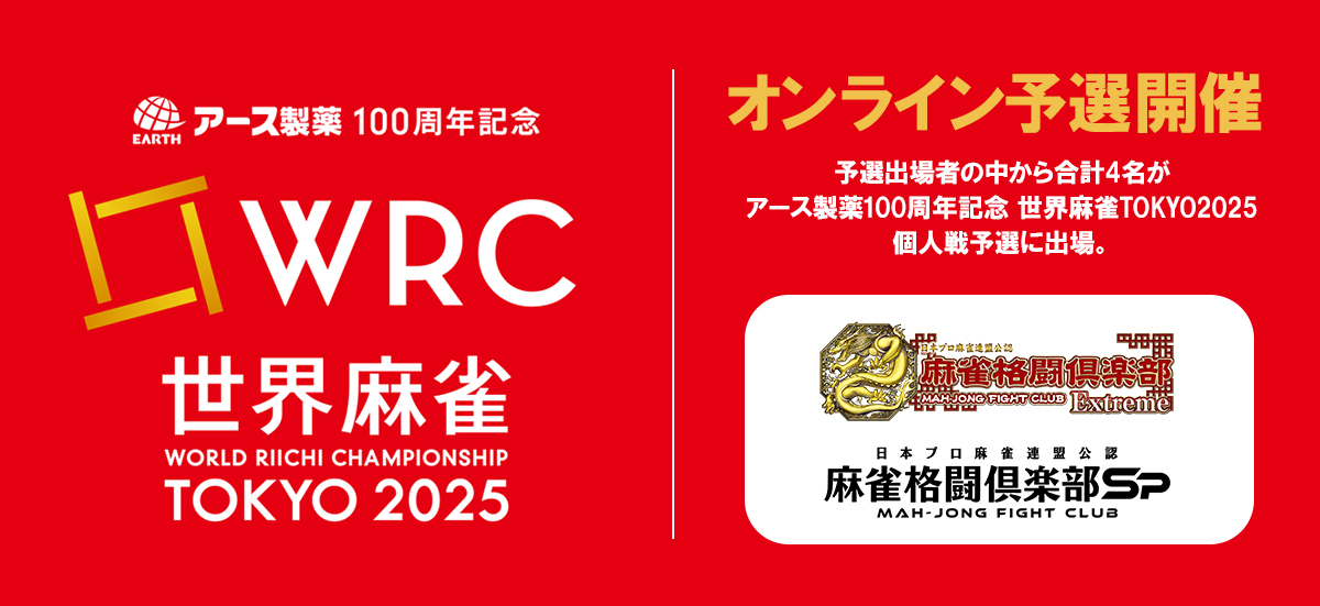 以下サイトでエントリーしプレーした、希望する成績優秀者2名に「アース製薬100周年記念 世界麻雀TOKYO2025」への出場権利が与えられます。