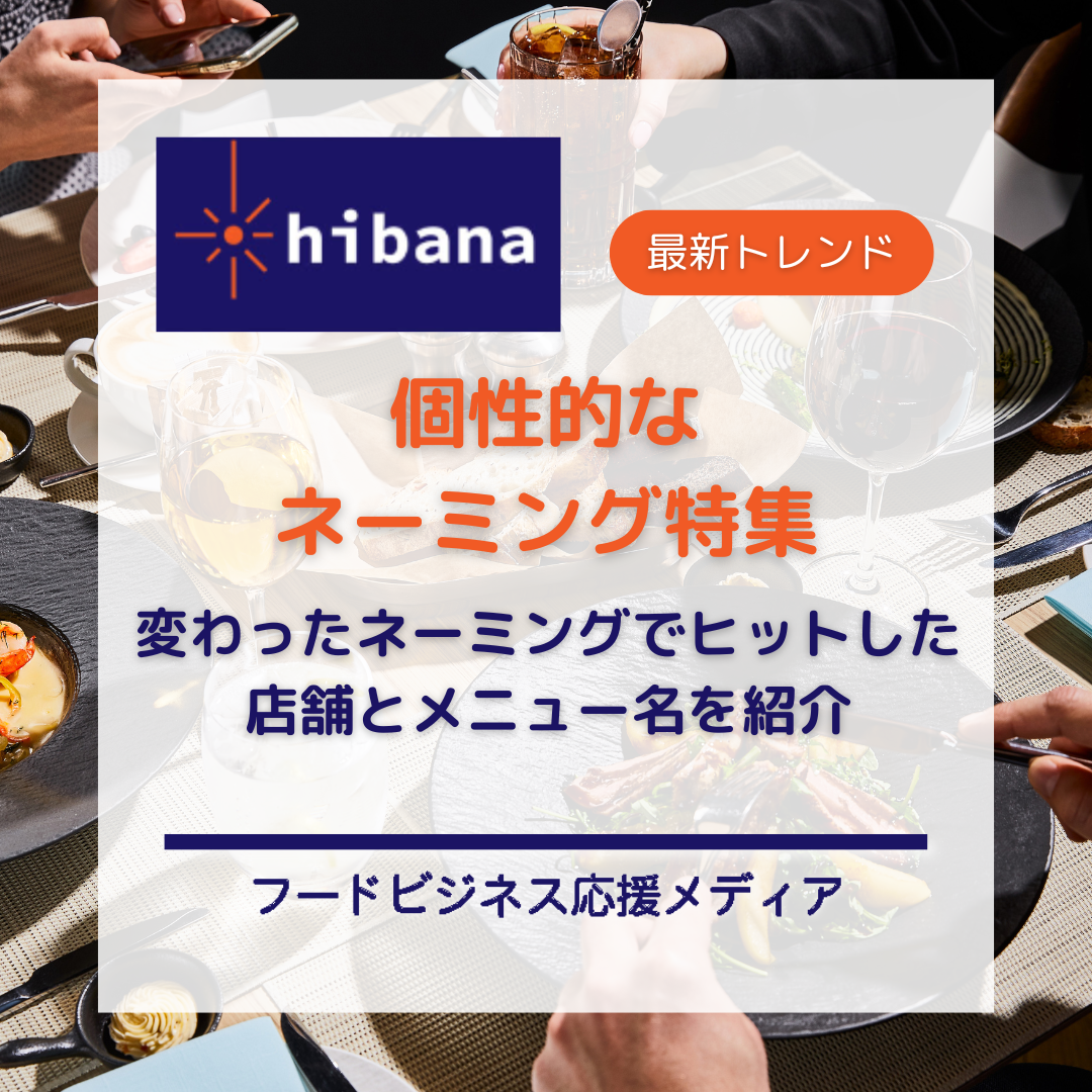フードビジネス応援メディア「hibana」特集記事『個性的なネーミングでヒットした店やメニュー名の例を紹介!コツや手順も徹底解説!』を公開