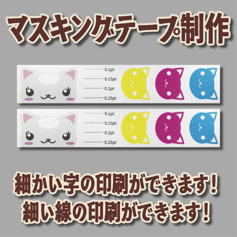オフセット印刷でのマスキングテープ制作(細い線や細かい文字の印刷が可能です)