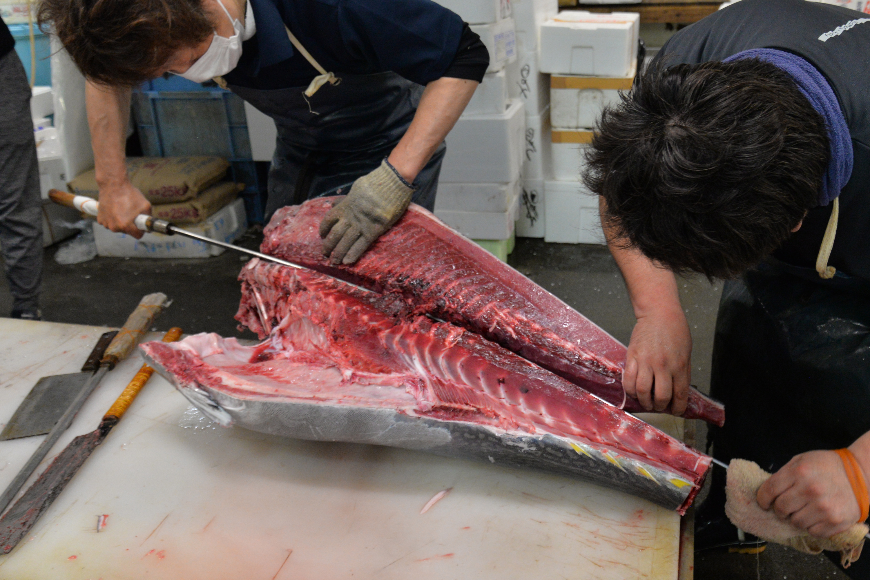 ◆市場の鮪屋『堺ふじ』さんで捌かれた鮪