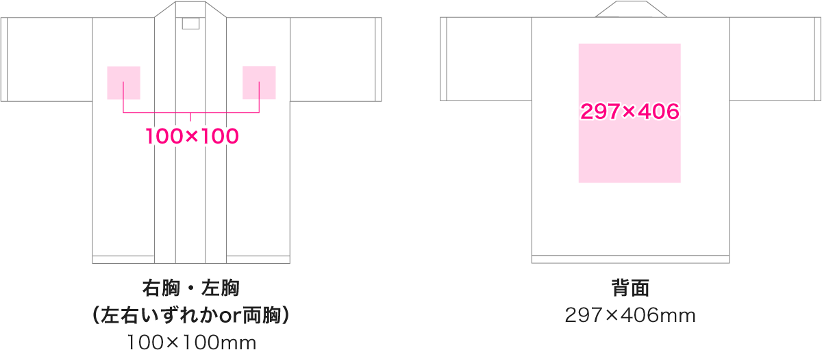 イベントハッピでは複数箇所に異なるデザインで印刷を行うことができ、右胸、左胸、背面の最大3箇所に印刷が可能です。