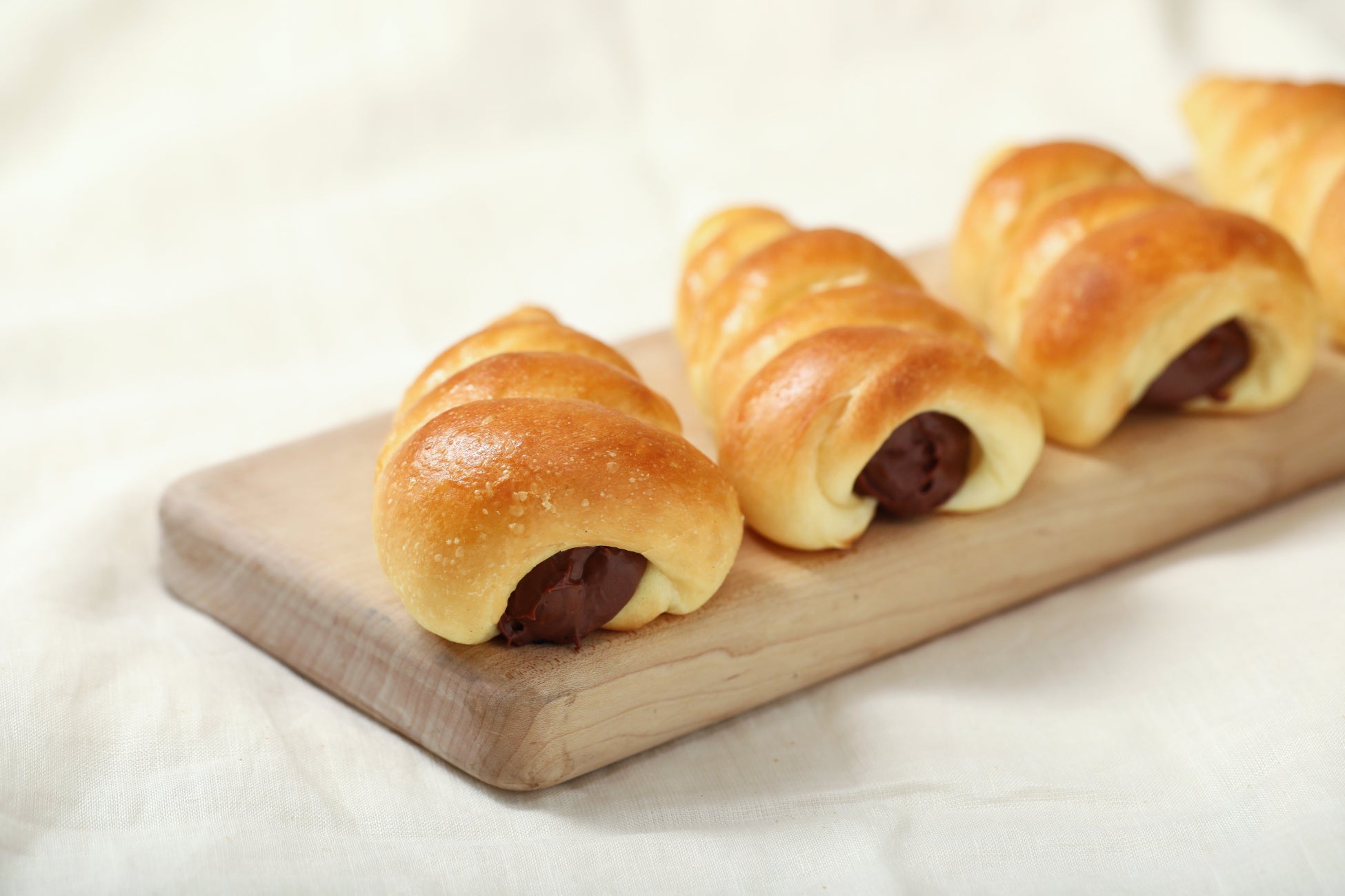 バゲットラビットの「ブール」は、日本人好みのお米やお餅のようなもちもち食感がやみつきの人気No. 1商品。もちもち食感とチョコ×バナナの味わいをお楽しみください。