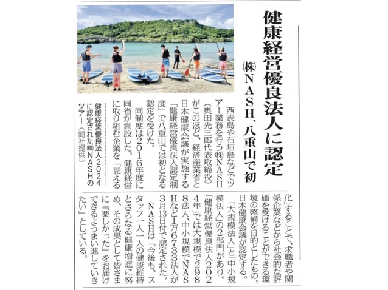 昨年は、八重山毎日新聞にて、「八重山諸島で初めての認定法人」として私たちの取り組みが八重山毎日新聞に掲載されました!地域に根差す企業として、このような形で評価いただけたことに心より感謝申し上げます。